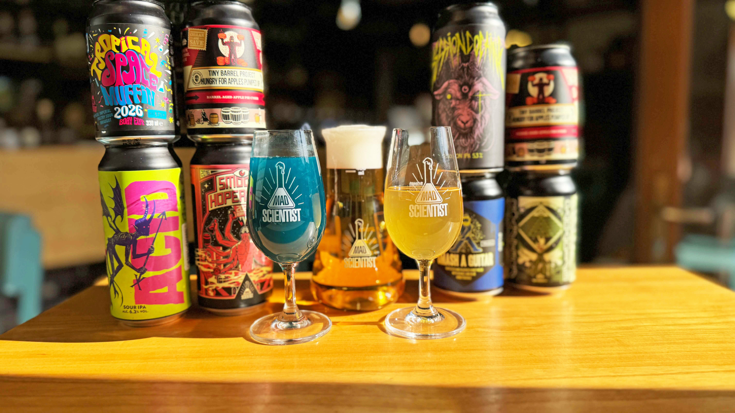 Bizony nehéz feladat egyetlen sörkóstolón bemutatni egy olyan sörfőzdét, melynek csapata 10 éve folyamatosan kreatív, újító recepteken töri a fejét, és heti szinten jelentkezik valami izgalmas és meghökkentő újdonsággal. Ennek ellenére úgy érezzük, a közösen megálmodott kóstolósor nemcsak ütős lett, de hűen tükrözi a Mad Scientist filozófiáját is: lesz itt cseh láger, mézsör, gyümölcssör, imperial stout, és természetesen jobbnál jobb IPA sörök is.